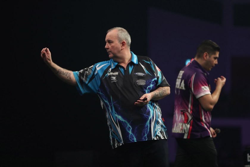 Previous Image Next Image DARTS BETWAY PREMIER LEAGUE DARTS 2017 MOTORPOINT ARENA,CARDIFF PIC;LAWRENCE LUSTIG] PHIL TAYLOR V JELLE KLAASEN PHIL TAYLOR IN ACTION