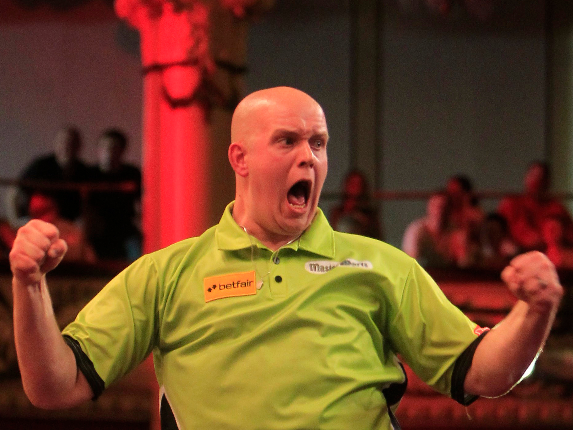 Previous Image Next Image DARTS BETFAIR WORLD MATCHPLAY 2012 WINTER GARDENS, BLACKPOOL PIC;LAWRENCE LUSTIG ROUND2 STEVE BEATON V MICHAEL VAN GERWEN MICHAEL VAN GERWEN HIS A NINE DARTER