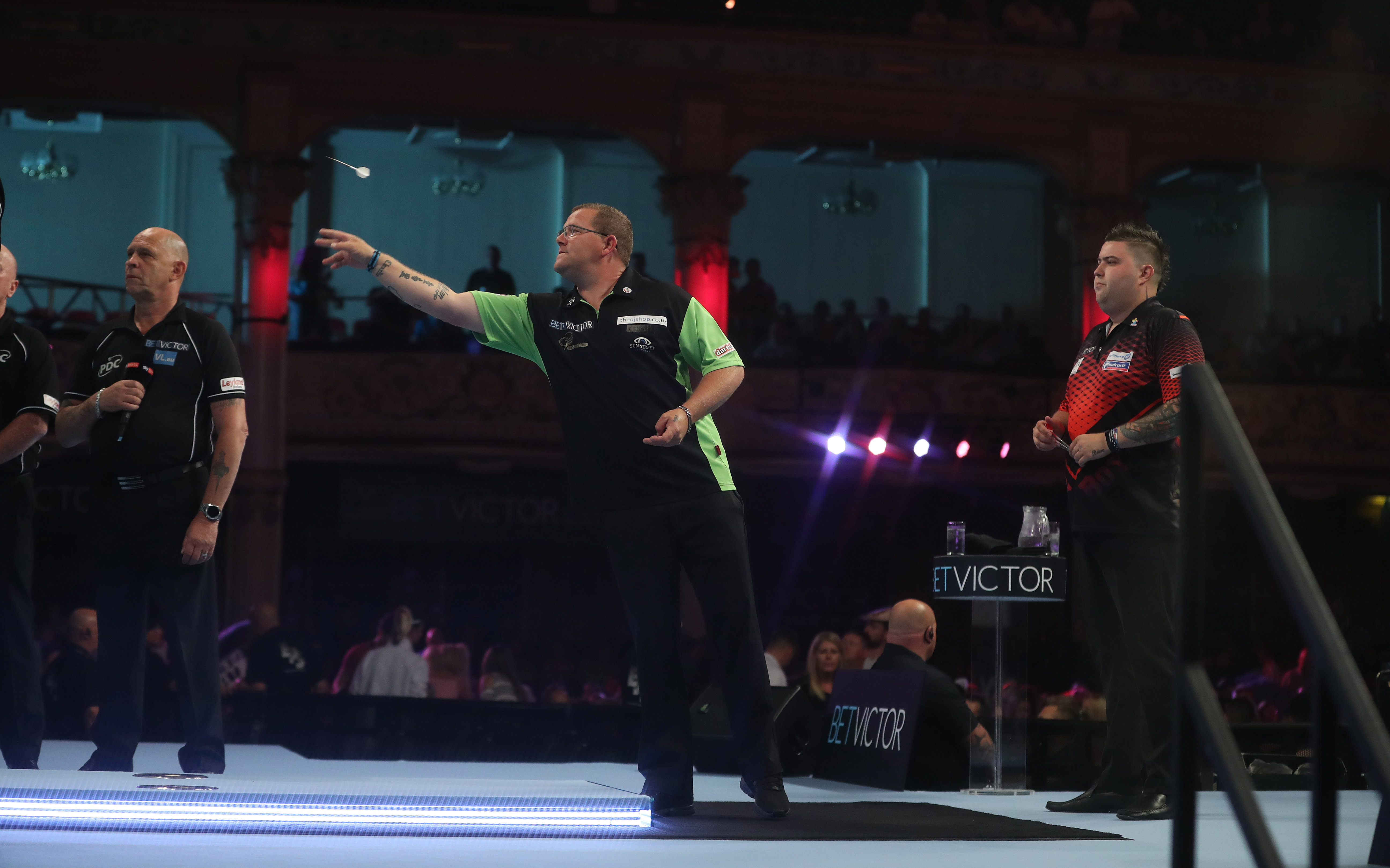 Previous Image Next Image DARTS BET VICTOR WORLD MATCHPLAY 2017 WINTER GARDENS, BLACKPOOL ROUND 1 MICHAEL SMITH V STEVE WEST STEVE WEST IN ACTION