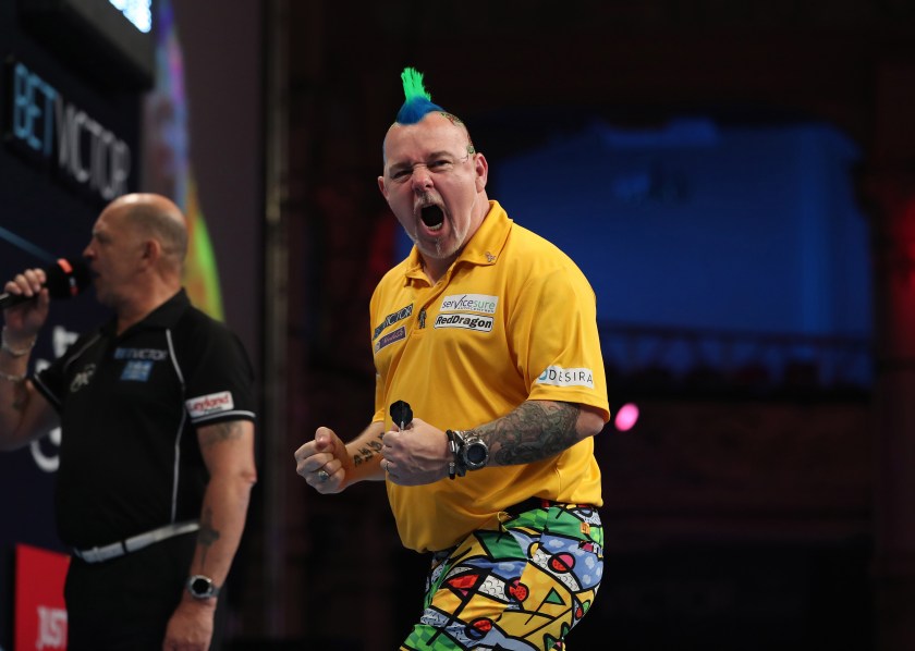 Previous Image Next Image DARTS BET VICTOR WORLD MATCHPLAY 2017, WINTER GARDENS, BLACKPOOL, PIC;LAWRENCE LUSTIG SEMI FINAL DARYL GURNEY V PETER WRIGHT PETER WRIGHT IN ACTION