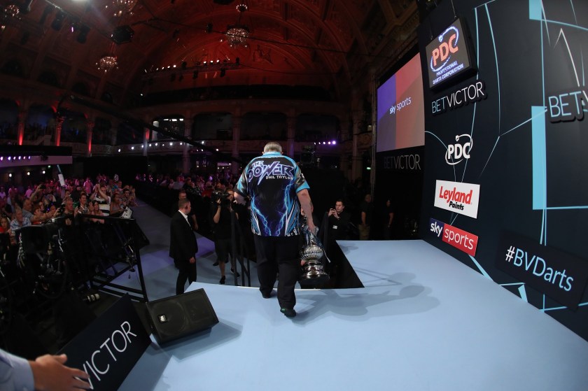 Previous Image Next Image DARTS Phil Taylor walks off the Winter Gardens stage with the trophy in his hand