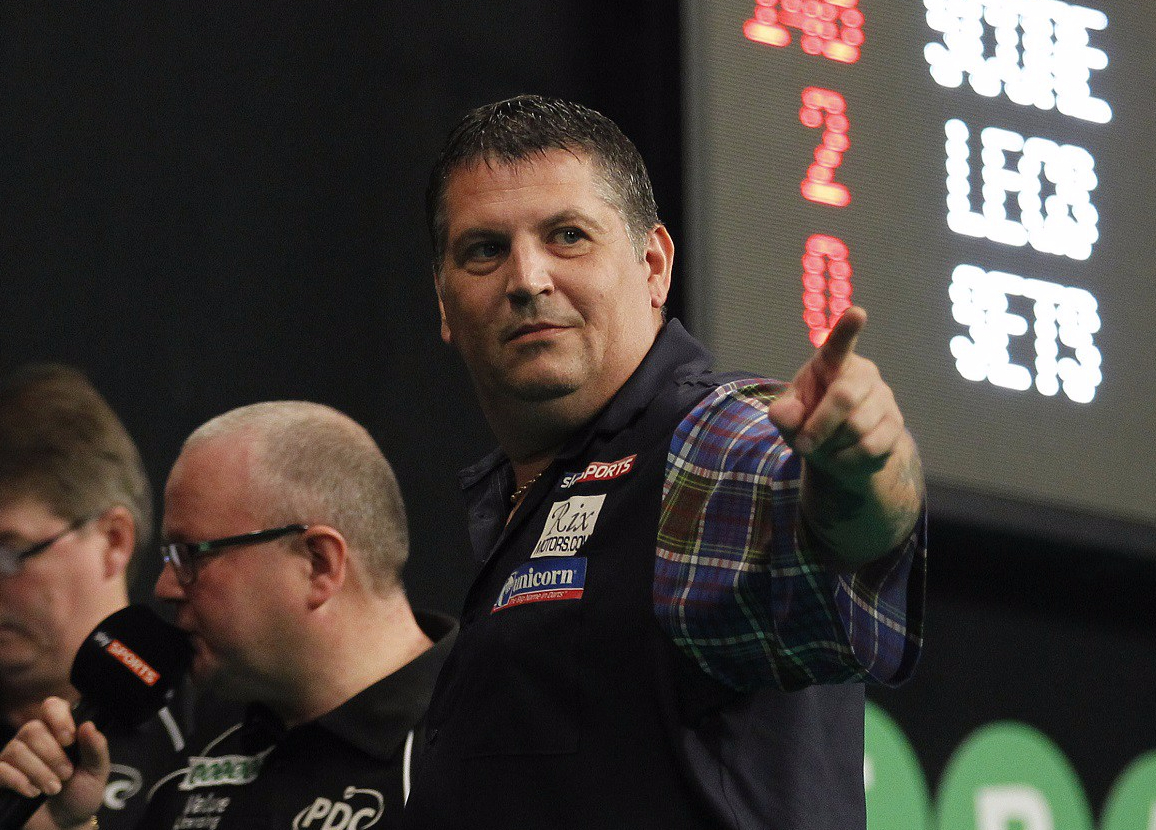 Previous Image Next Image DARTS UNIBET WORLD GRAND PRIX CONVENTION CENTRE,CITY WEST, DUBLIN,IRELAND PIC;LAWRENCE LUSTIG semi final Michael van Gerwen v Dave Chisnall GARY ANDERSON IN ACTION